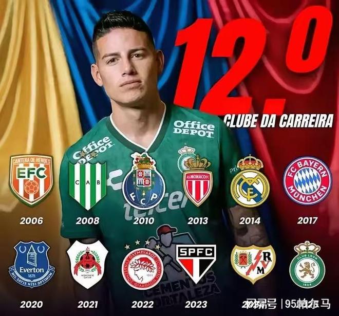 流浪模式對(duì)于J羅而言并不陌生,16歲即出道的哥倫比亞人在過去的18年職業(yè)生涯中居然更換了12家俱樂部,準(zhǔn)確說,從28歲開始就與頂級(jí)豪門絕緣了,在過去的5年時(shí)間里,他的足跡遍布了埃弗頓、賴揚(yáng)、奧林比亞克斯、圣保羅、巴列卡諾和萊昂。