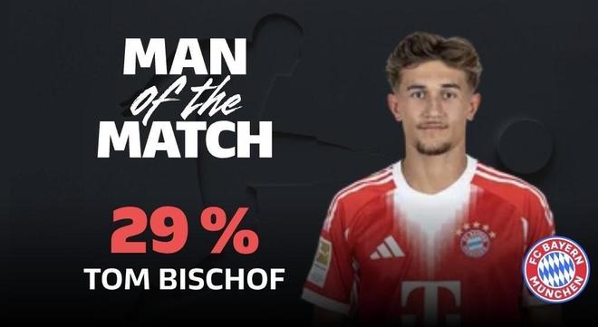 德甲第9輪,拜仁慕尼黑主場(chǎng)3-0大勝勒沃庫森,此役送出一次助攻的比朔夫當(dāng)選德甲官方全場(chǎng)最佳球員。