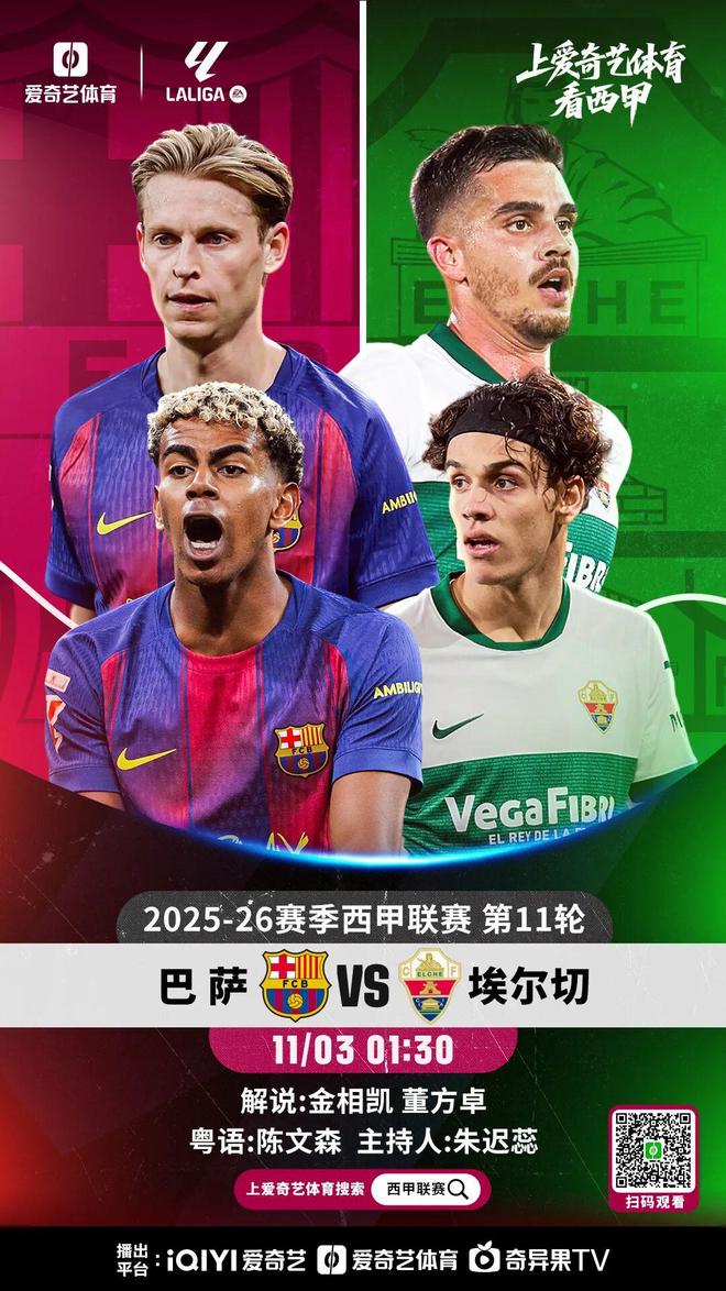 周一凌晨,巴薩將在主場(chǎng)對(duì)陣升班馬埃爾切。本場(chǎng)比賽,愛奇藝體育將全程直播。